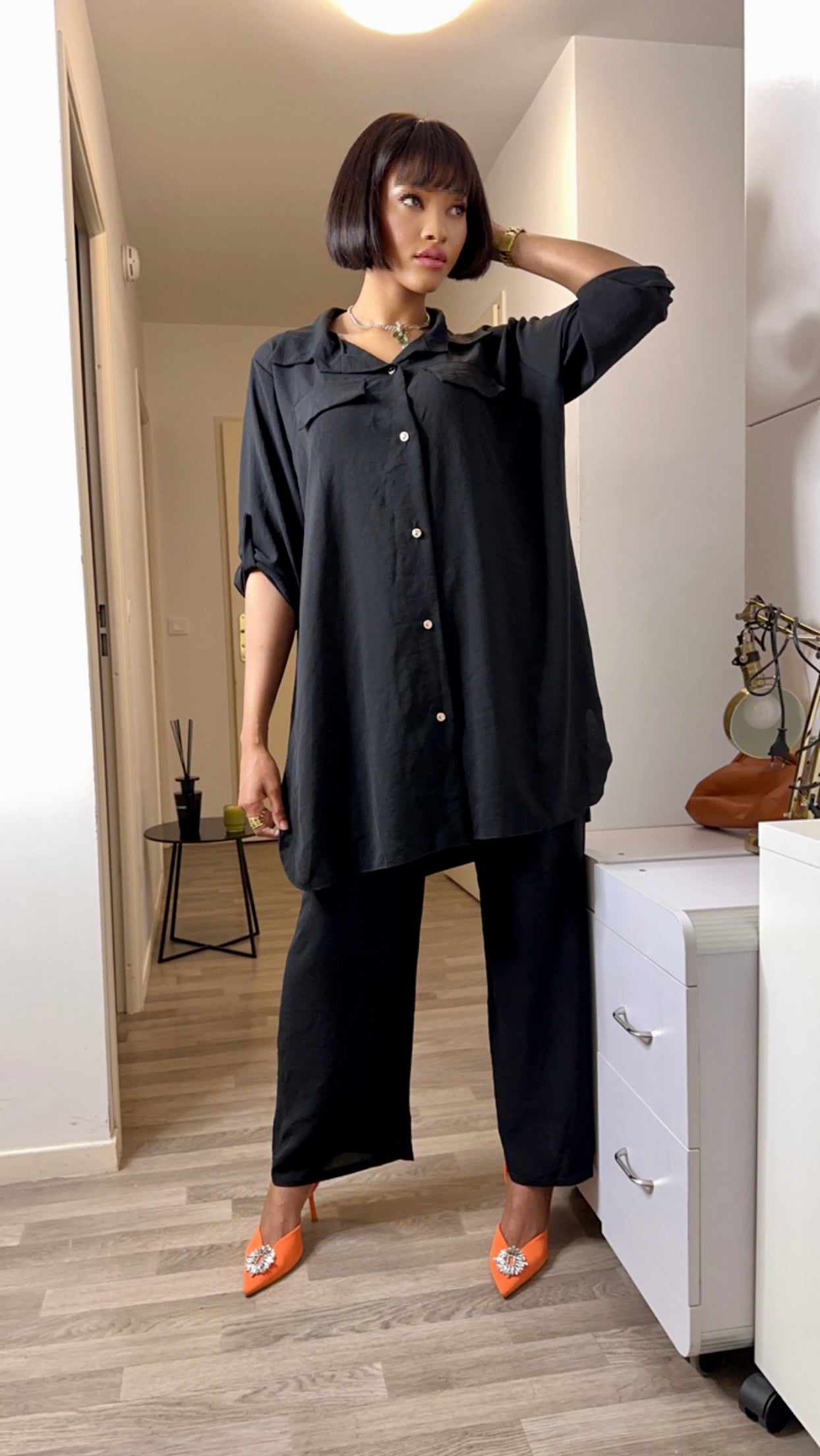 Ensemble chemise avec des boutons doré, la chemise se ferme par des boutons et les manches peuvent être retroussée et attachée par une languette et un bouton sur le haut du bras. Notre magnifique et confortable ensemble existe en plusieurs couleurs